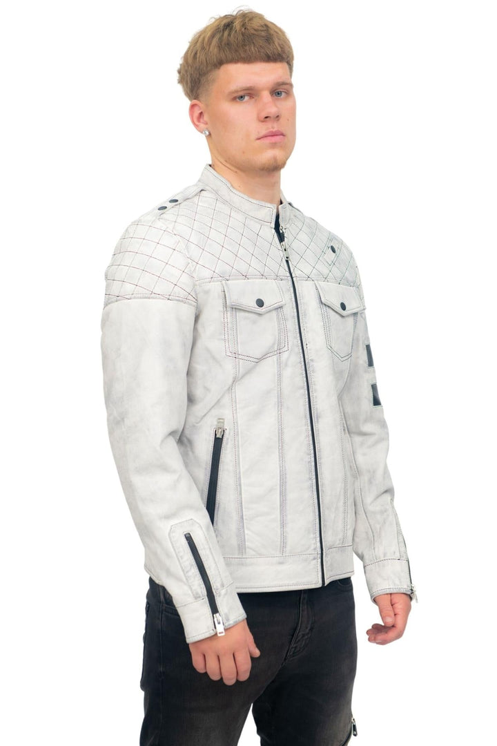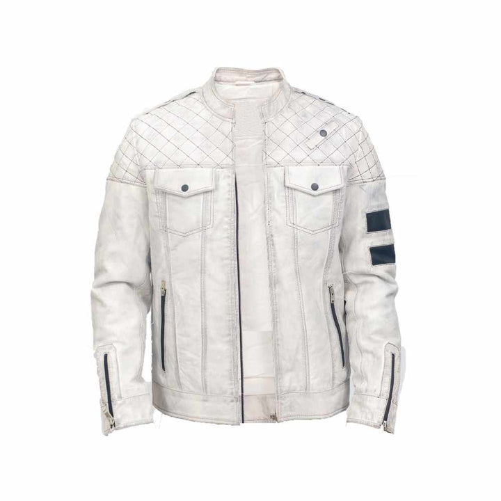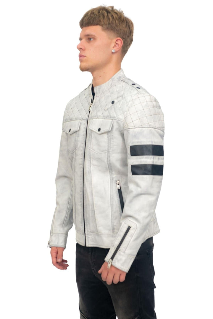 Men’s Vintage Quilted Leather Racing Jacket Cardiff Lambskin Biker Style